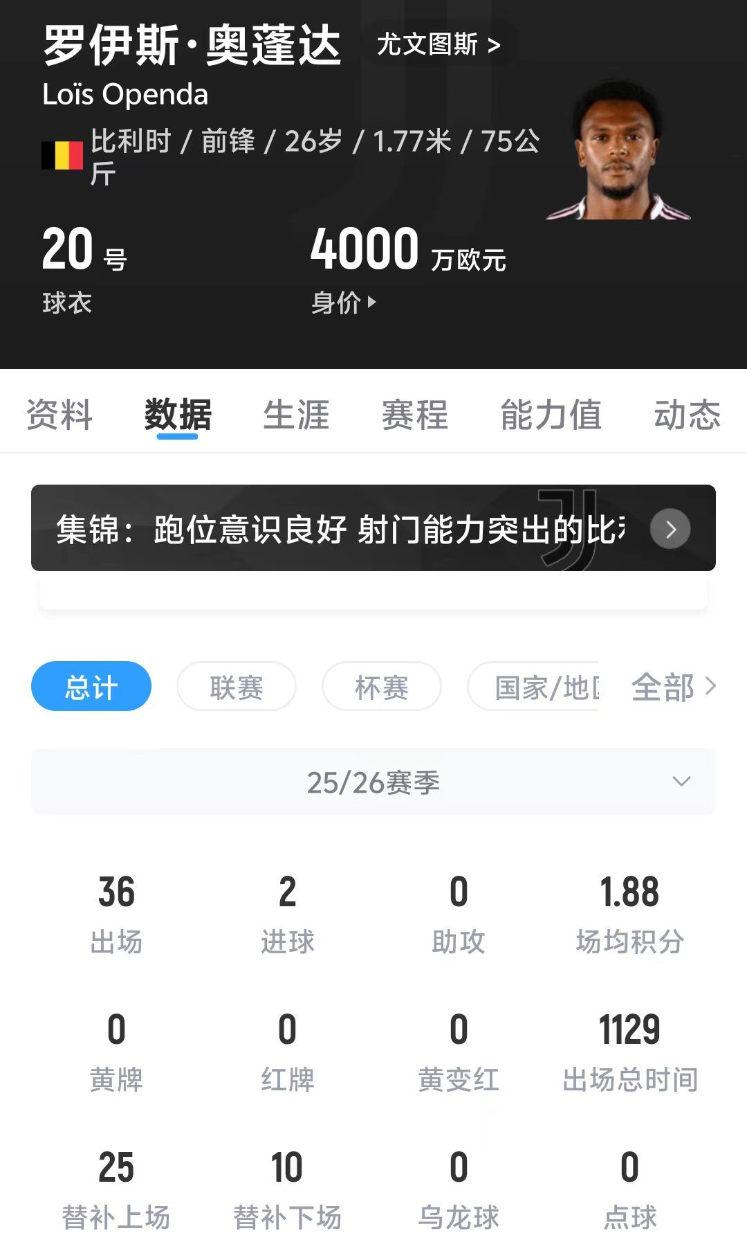 目前26岁的奥蓬达德转身价为4000万欧元。如果尤文最终买断奥蓬达,这笔交易的最高转会费可以达到4640万欧元。